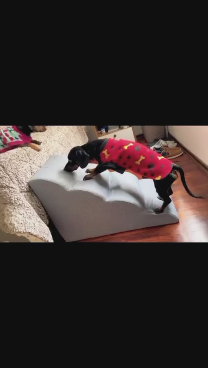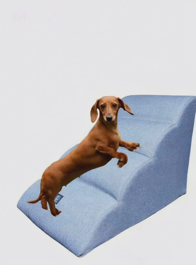 Escalarampa 2 en 1 para ayudar a tu mascota a subir y bajar de camas o sofás sin esfuerzo. Reduce el impacto en articulaciones y previene lesiones, especialmente en razas pequeñas, adultas o con movilidad delicada.
