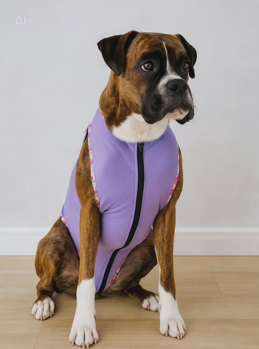 Fajas postoperatorias de licra ajustable e hipoalergénica. Ayudan a proteger la zona intervenida, evitar que la mascota lama o muerda los puntos y brindan soporte suave durante el proceso de recuperación.